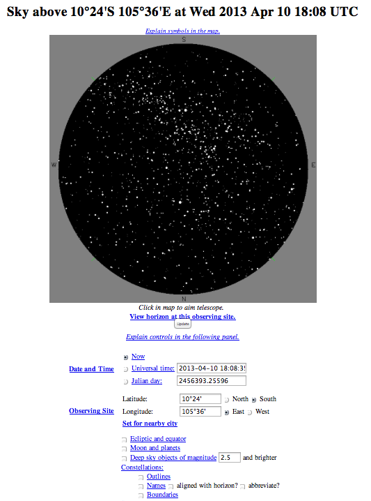 Fourmilab "Yoursky" (Factual Fiction Starfields Based Upon Time & Location)