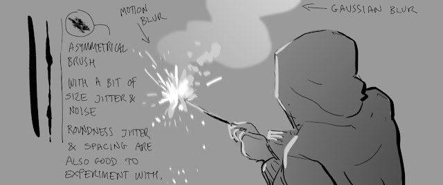 #Photoshop Tip for greyscale #storyboard: sketch w/ paint brush set to ‘Behind’ mode, toggle grey w/ X key to paint fill (still in Behind)