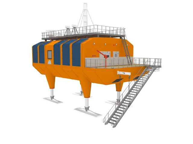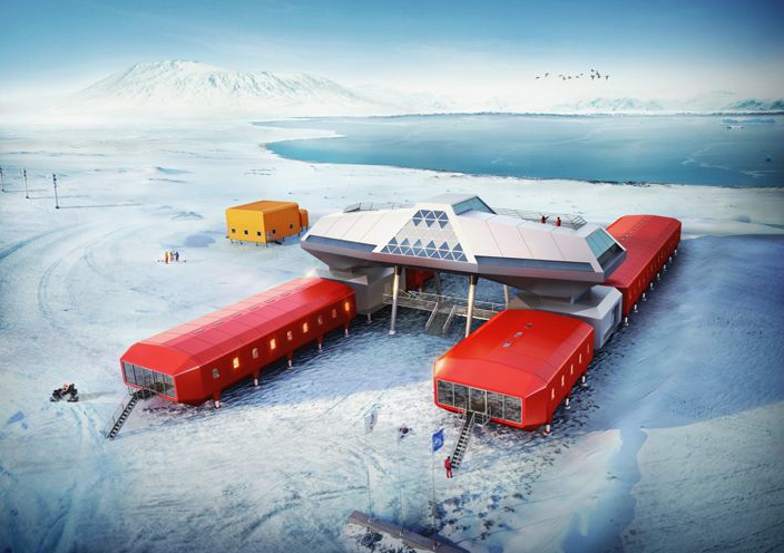 “We approached the design of the Base Station by making the most of the structural opportunities offered by the Polar vernacular -ice, which (when melted under pressure) forms a sludge composed of 40% dust. When re-frozen this will behave much like concrete. Form-work from this is found in the twin skin textile walls of the base, which is inflated into shape upon landing. The sludge shall be used to strengthen key areas of the base.”