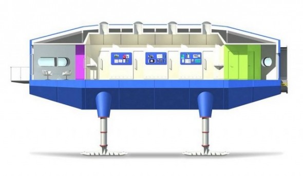 “This station, a self assembling six module robotic design on tracked landing legs, was created by ANY Design Studios and would allow for ten people to live indefinitely.”