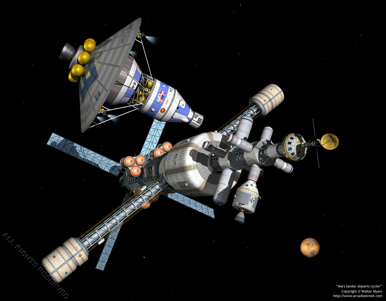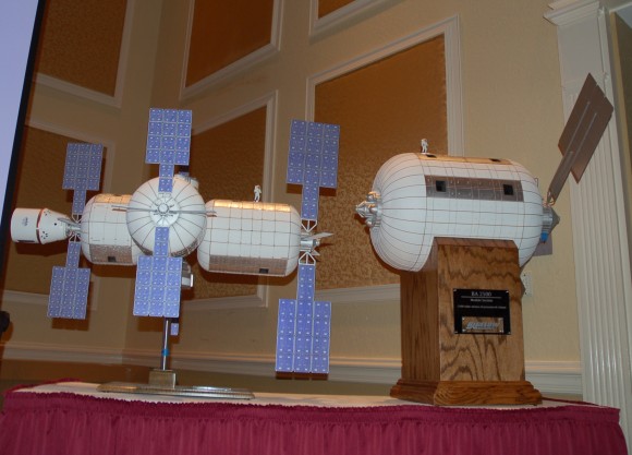 References: Bigelow Inflatable Space Habs Robert Bigaelow Presentation at ISDC 2011 (click for videos) Stills (click for high-res): (two concepts above by Walter Myers) http://www.bigelowaerospace.com http://en.wikipedia.org/wiki/BA_330 http://en.wikipedia.org/wiki/TransHab http://en.wikipedia.org/wiki/Bigelow_Aerospace